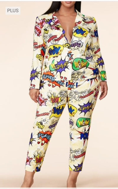 This suit is for the light-at-heart! CAn mix with denim or a solid skirt or have fun and wear the entire suit! It's fun to Live and Laugh OUT LOUD! Especially designed for the "Woman of Equity" in mind. Suit does run larger! Styling Tips: Solid color pants and gold jewelry and favorite color handbag! Have fun with this suit!